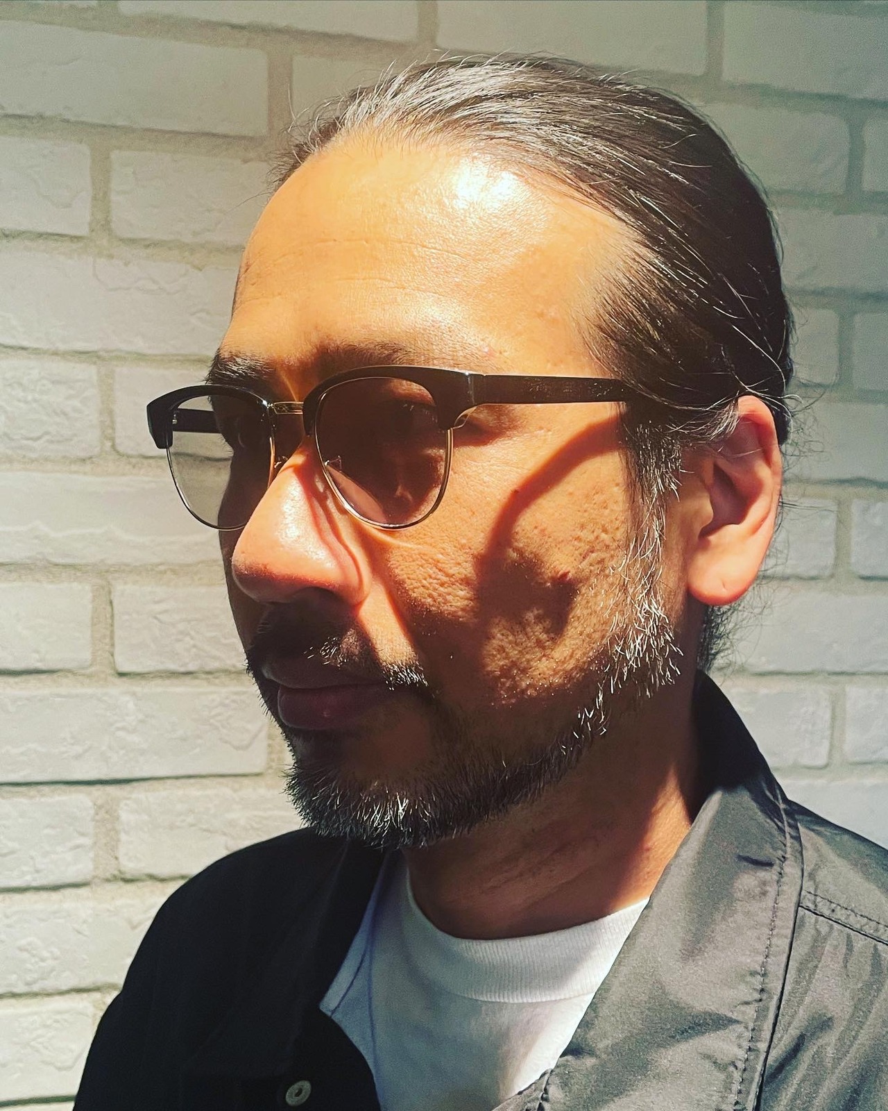 プラスチックの柔らかな質感をメタルで引き締めブリッジには模様を彫り、ディティールにもこだわったアイテム。